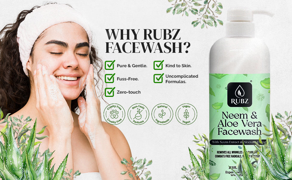 - Suitable for All: Designed for all skin types, Rubz Neem and Aloe Vera Face Wash is the ideal choice for those seeking a Clearer and healthier complexion.
