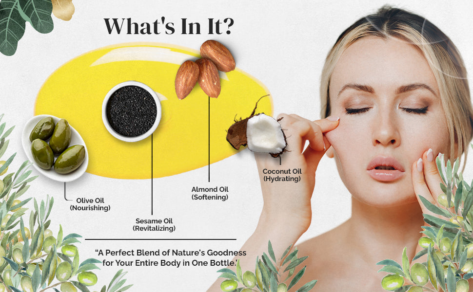 - Skin Hydration and Rejuvenation: Enriched with the nourishing power of olive oil, this massage oil deeply hydrates and rejuvenates your skin. It leaves your skin feeling soft, smooth, and beautifully moisturized after each use.