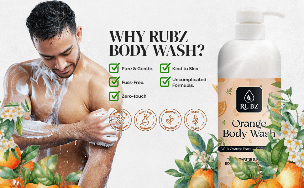 - Hydrating Formula: Formulated with nourishing ingredients, Rubz Body wash helps maintain skin’s natural moisture barrier, preventing dryness and promoting soft & supple skin.