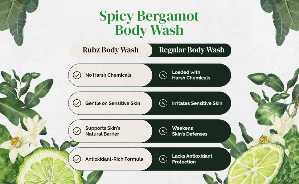 - Hydrating Formula: Formulated with nourishing ingredients, Rubz Body wash helps maintain skin’s natural moisture barrier, preventing dryness and promoting soft & supple skin.
