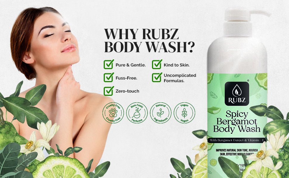 - Vegan and Cruelty-Free: Rubz Body wash is crafted with a commitment to being both vegan and cruelty-free, ensuring a product that is ethical, sustainable, and kind to animals.