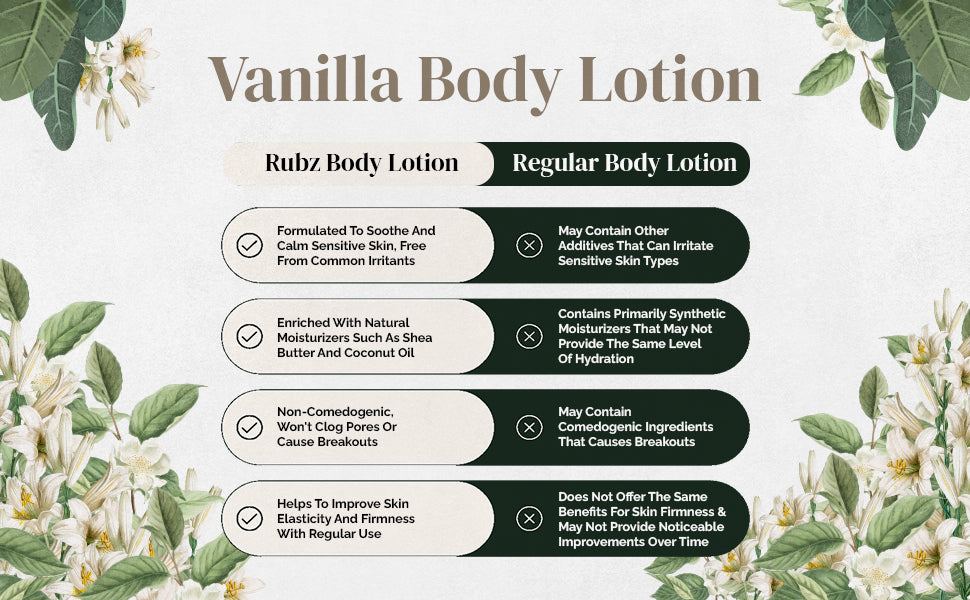 - Versatile Delight: Elevate your self-care ritual with the classic charm of vanilla. Suitable for all skin types, our Vanilla Body Lotion is perfect for adding a touch of everyday luxury to your skincare routine.