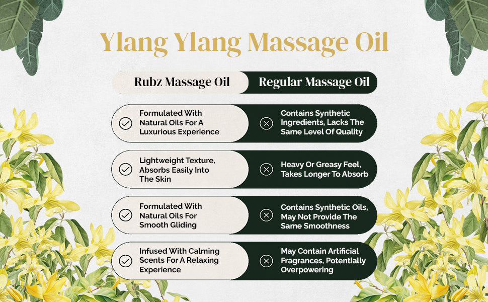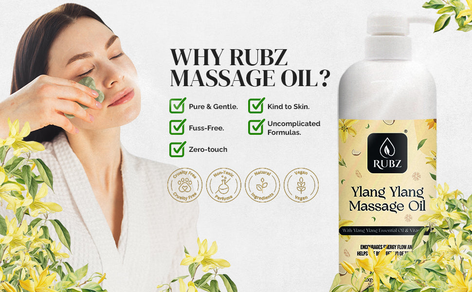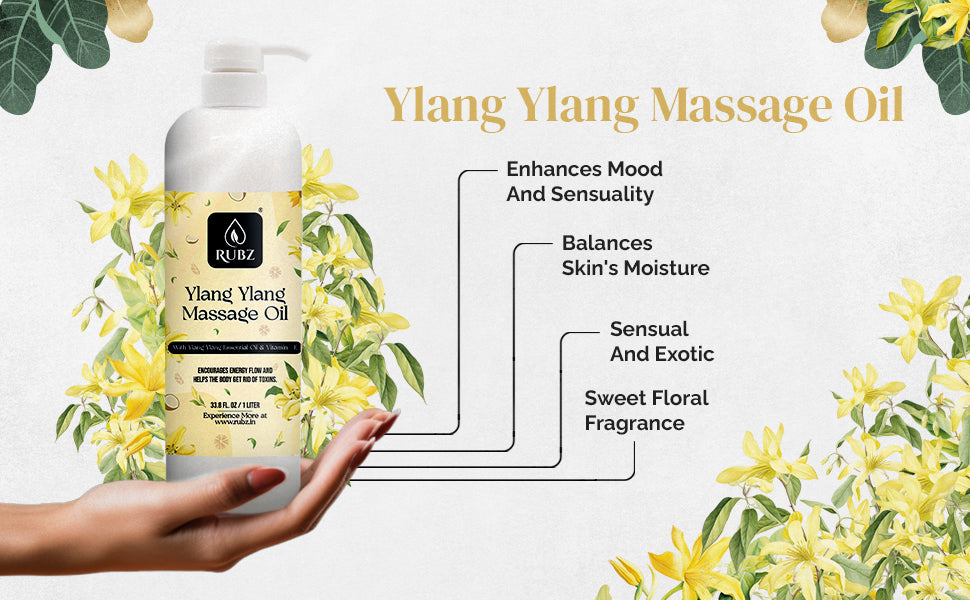 - Skin Nourishment: Enriched with natural botanical extracts, Rubz Ylang Ylang Body Massage Oil nourishes and hydrates your skin, leaving it soft, supple, and beautifully rejuvenated. Enjoy the dual benefit of relaxation and skin pampering.