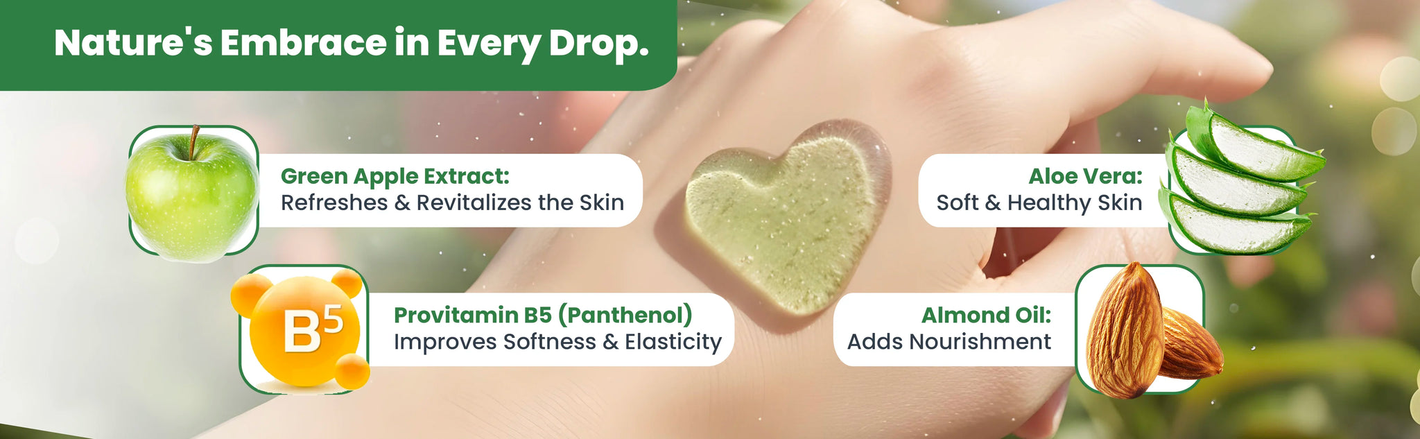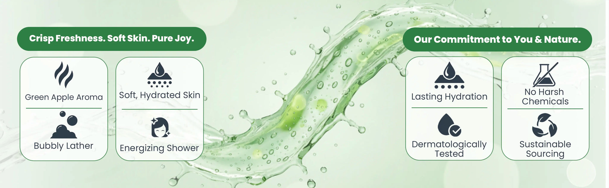 Our green apple body wash delivers a juicy, refreshing aroma that energizes your senses every shower.