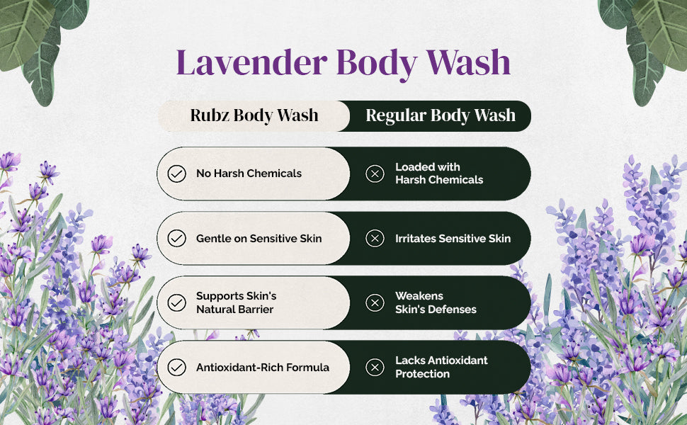 - Hydrating Formula: Formulated with nourishing ingredients, Rubz Body wash helps maintain skin’s natural moisture barrier, preventing dryness and promoting soft & supple skin.